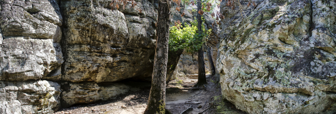 One of the many twisting trails around Bear Cave, at Arkansas’s Petit Jean State Park.
